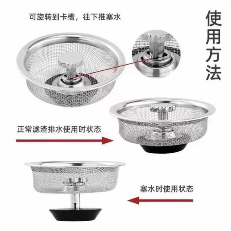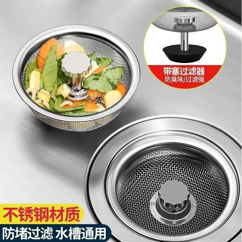 Filtro de fregadero de cocina, filtro de piscina de acero inoxidable engrosado, Red de residuos antibloqueo Universal para lavabo de alcantarillado