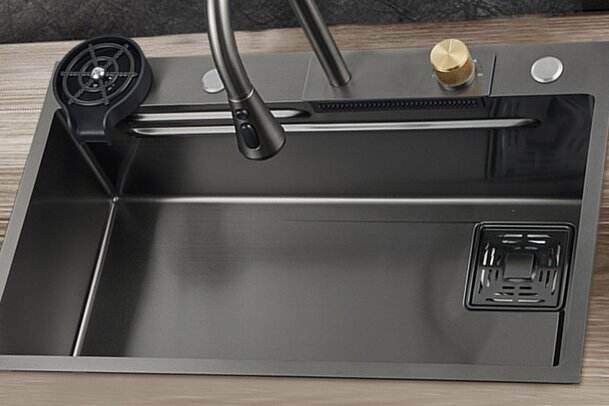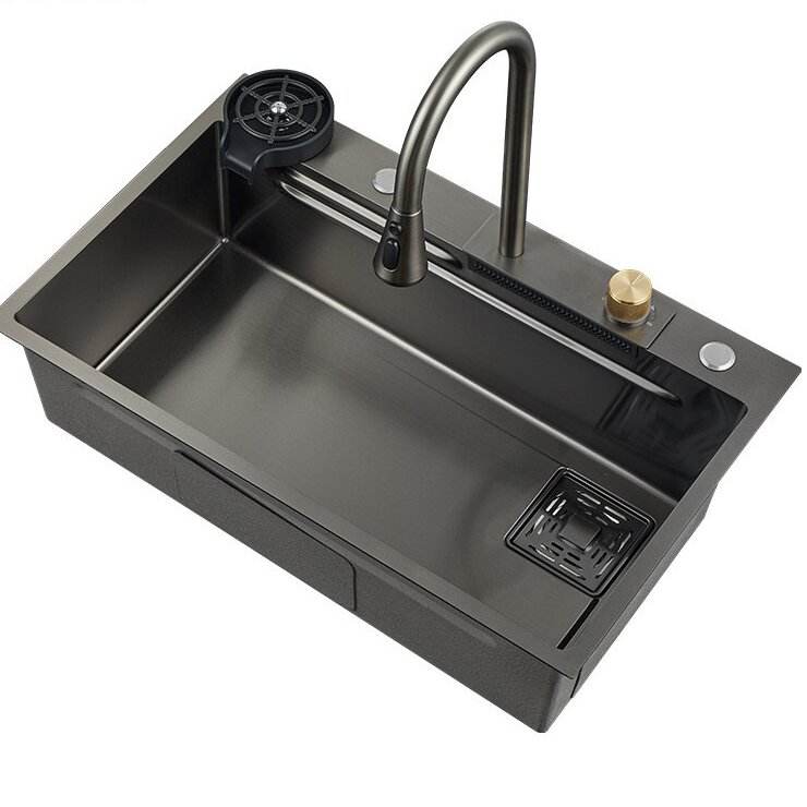 Fregadero de Cocina Nano Track, Fregadero Individual Grande de Acero Inoxidable, con Función Integrada de Lavado, Corte y Drenaje