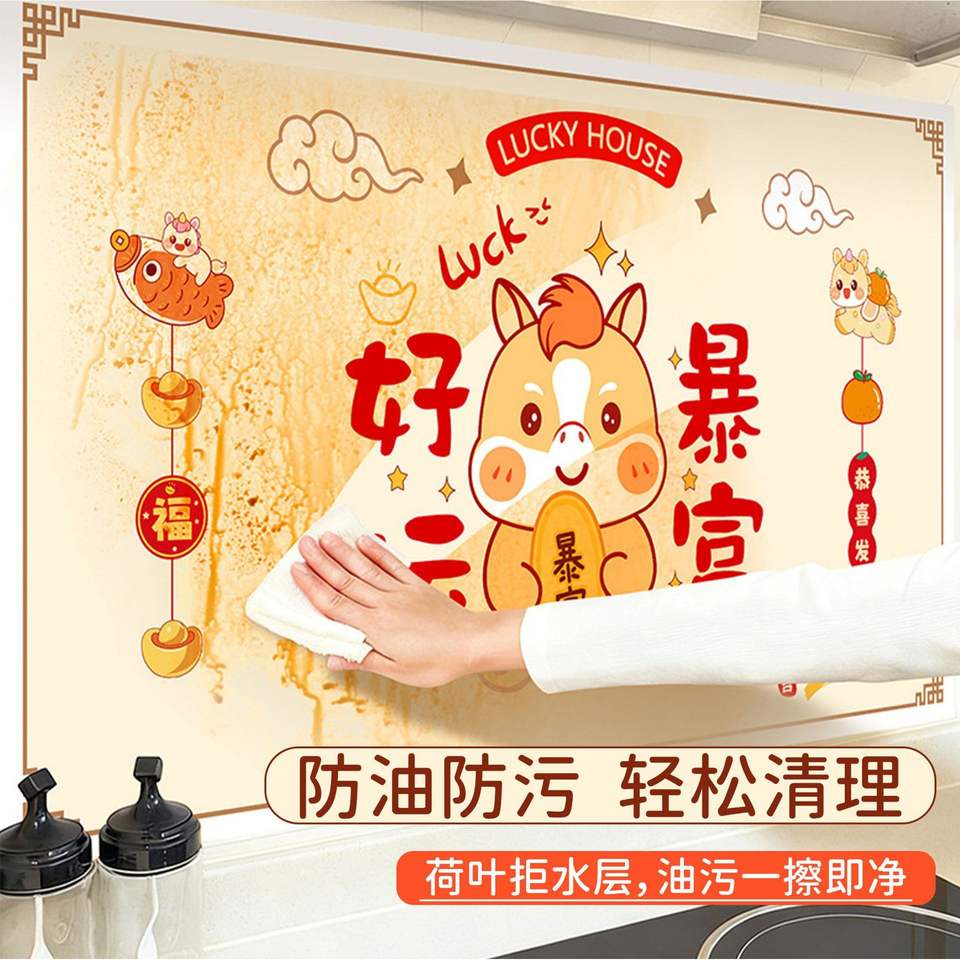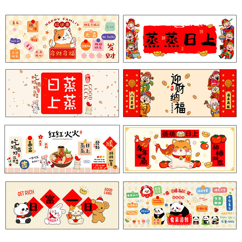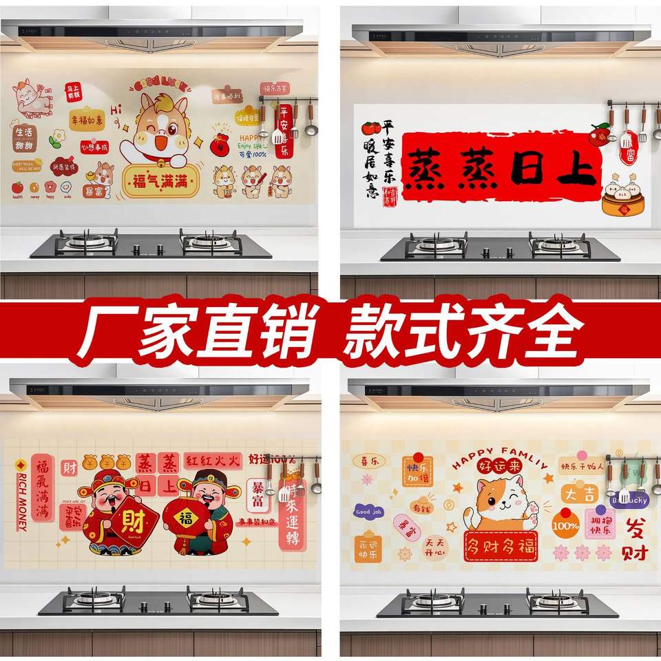 Kitchen Stickers Oil Proof Self Adhesive Rectangle Pet Material Chinese New Year Home Decoration Cartoon Animal Themed