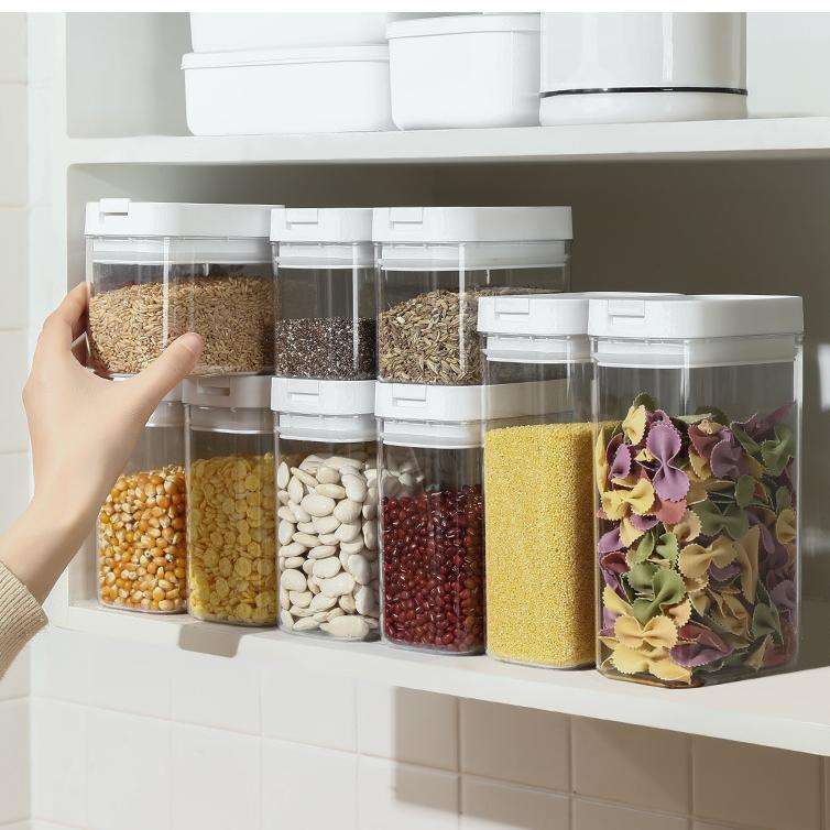 Frascos herméticos para alimentos emergentes blancos, contenedores de almacenamiento de cocina con tapas fáciles de abrir, olla de sellado de cereales para obsequios