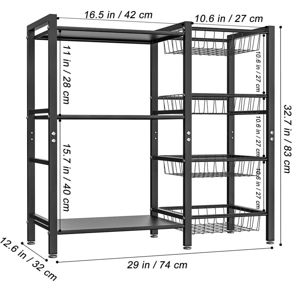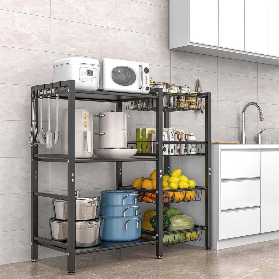 Estante de Almacenamiento para Cocina de 3 Niveles y 4 Cestas para Repostería y Utensilios de Café, por Fabricante