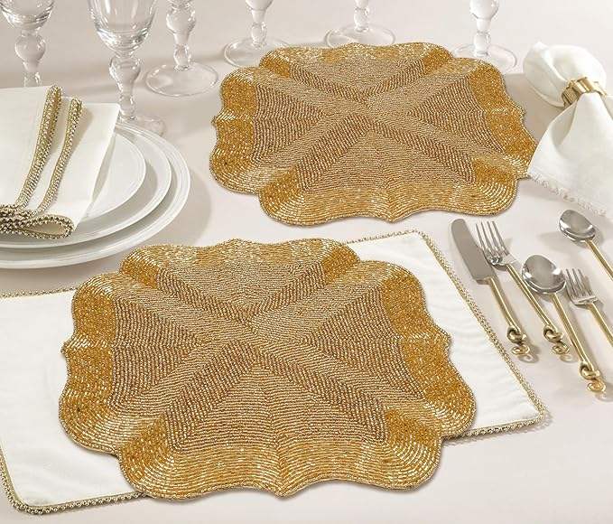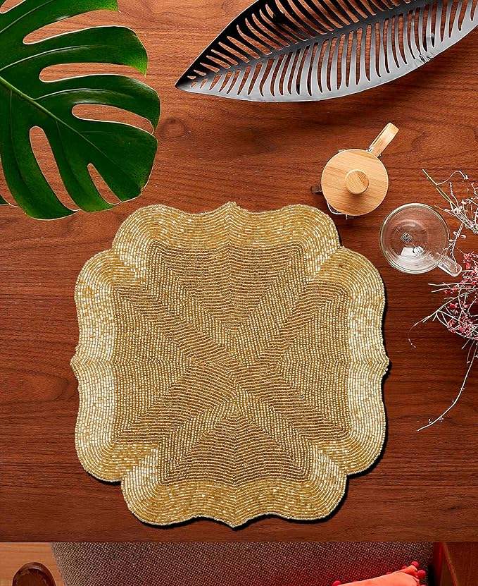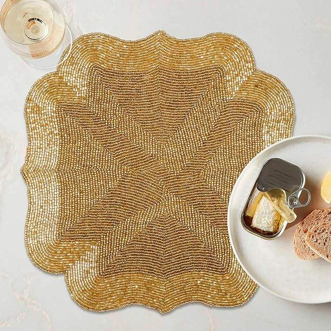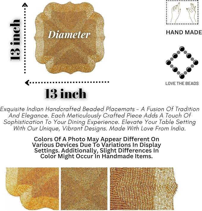 Manteles Individuales Redondos con Cuentas para Decoración de Mesa de Cocina, Manteles Individuales de Cuentas de Semillas para Comedor, Fiestas, Bodas al Aire Libre Personalizadas