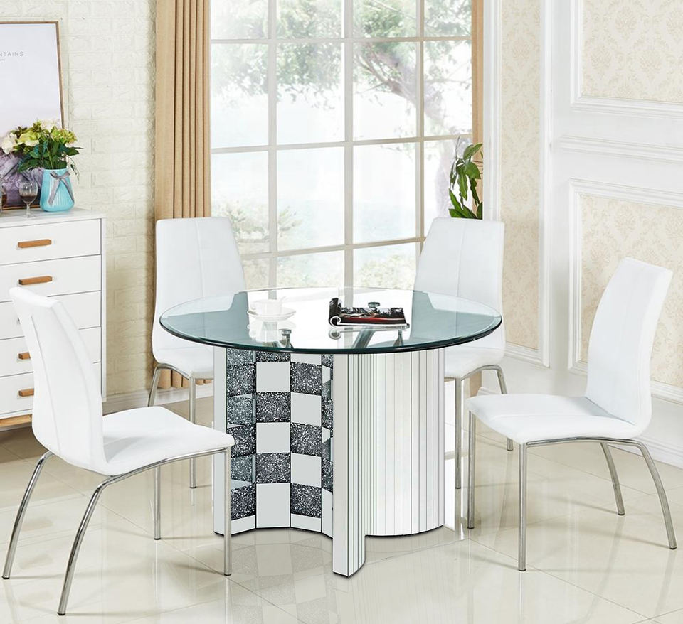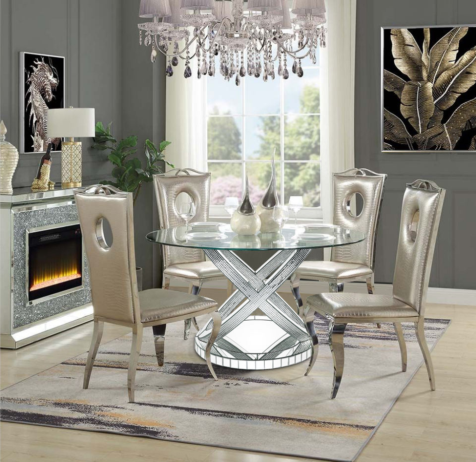 Juego de mesa y sillas de cocina para 4 mesas de comedor Juegos de cocina de madera MESA DE COMEDOR CON ESPEJO SUPERIOR DE CRISTAL REDONDO