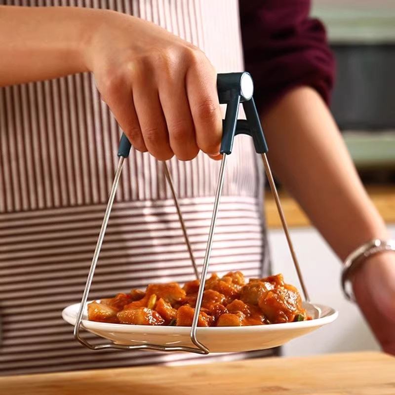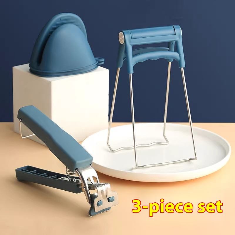 Juego de tres piezas para cocina: pinzas de silicona anti-quemaduras para tazones, soportes para cucharas y pinzas para ollas, multifuncional, de acero inoxidable.