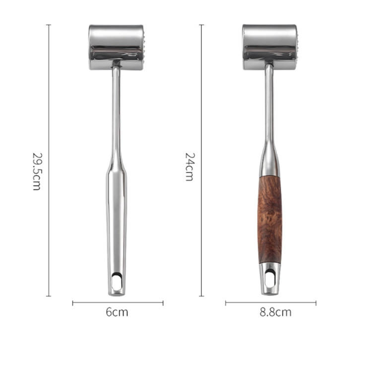 Herramienta de cocina 304 ablandador de carne de acero inoxidable mango de madera martillo para carne para bistec carne pollo cerdo