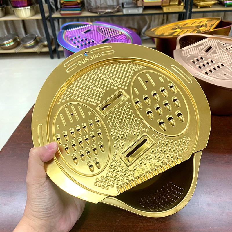 Utensilios de Cocina 4 en 1: Tazón para Lavar Arroz con Colador, Tazón de Acero Inoxidable con Rallador, Cesta Escurridora