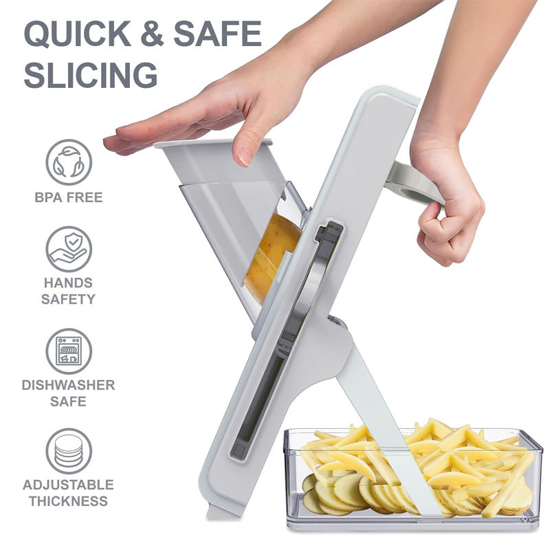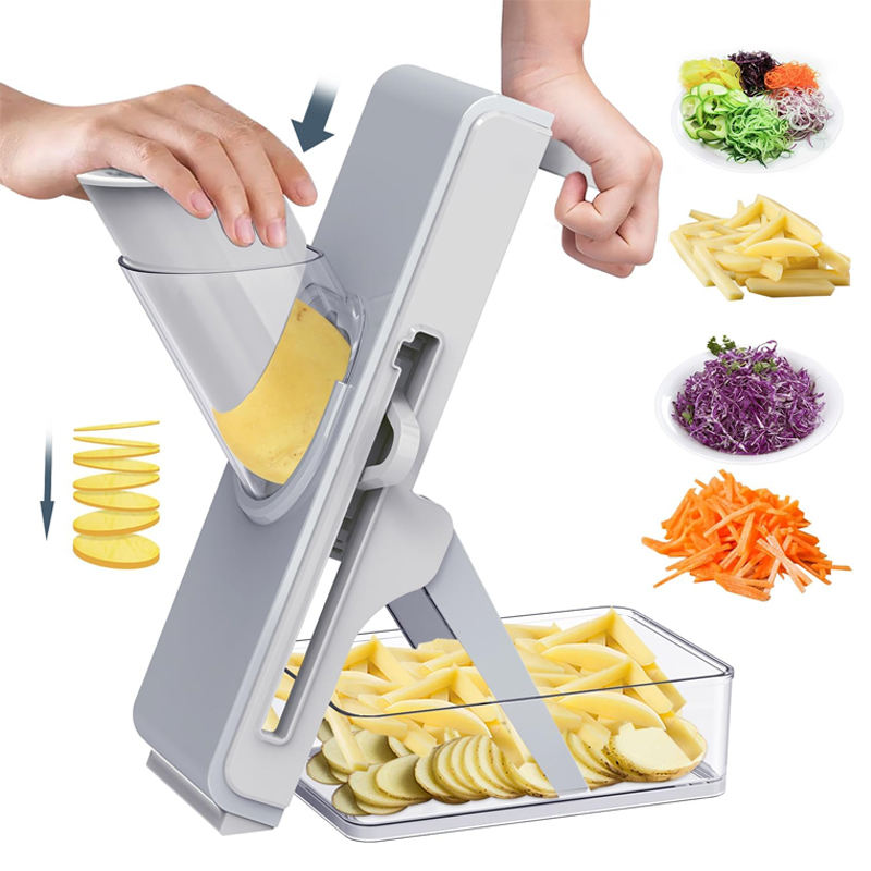 Utensilios de Cocina, Rebanador Manual de Frutas y Verduras, Cortador de Papas Fritas, Picador Multifuncional de Verduras con Contenedor