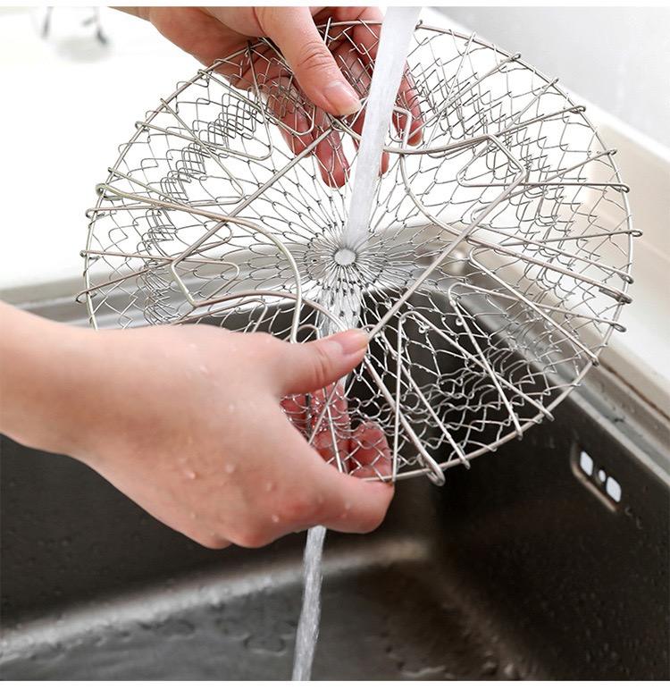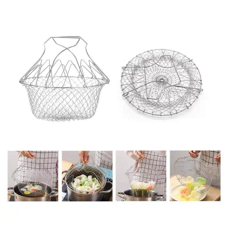 Herramientas de cocina Freidora de aceite de acero inoxidable Escurridor plegable Papas fritas Contenedor de verduras Cesta para freír