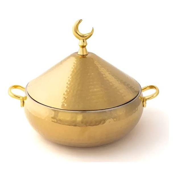 Olla para Servir Alimentos de Uso en la Cocina, Olla Redonda de Diseño Árabe de Calidad Superior, Olla para Restaurante y Hotel con Tapa de Acero Inoxidable
