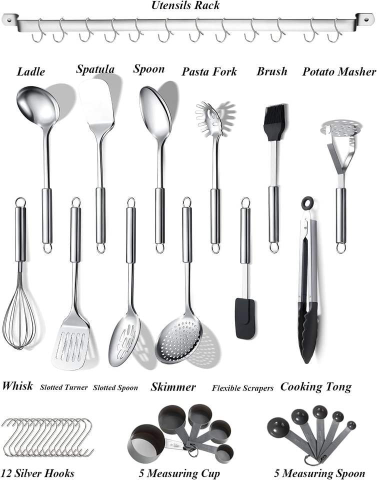 Juego de Utensilios de Cocina de 38 Piezas, Juego de Utensilios de Cocina de Acero Inoxidable, Utensilios de Cocina, Juego de Herramientas de Cocina con Utensilios