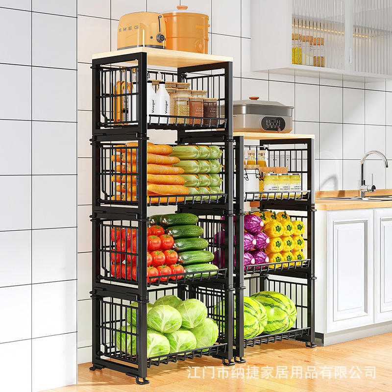 Estante de almacenamiento de verduras para cocina, de 4 niveles, plegable, de metal, para organizar frutas y verduras, tipo vertical, rectangular y duradero.