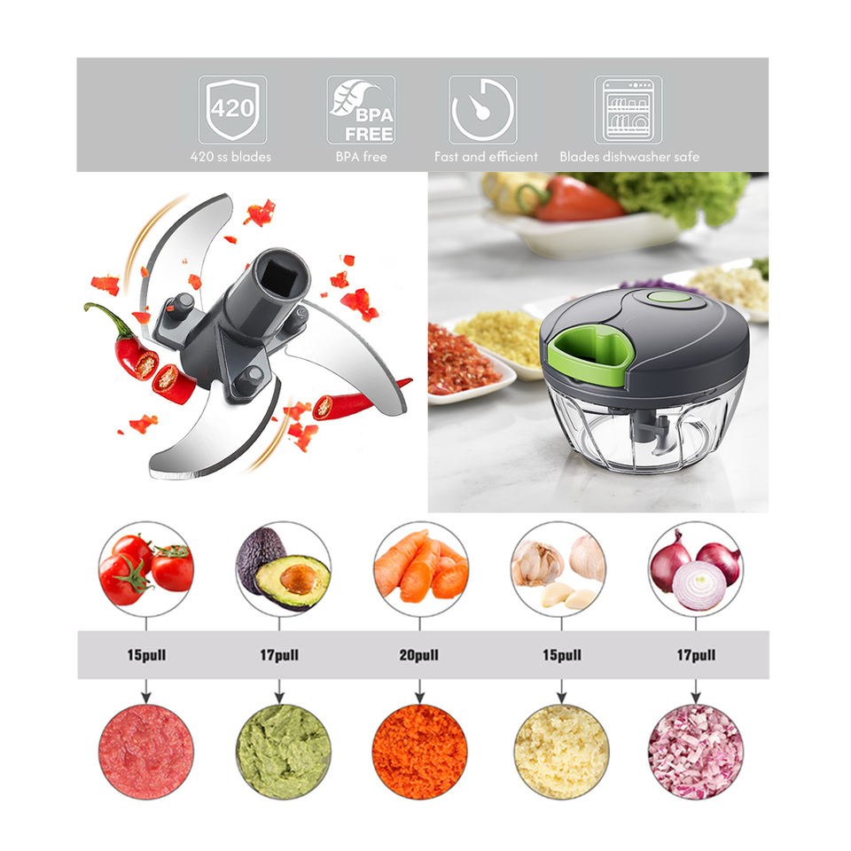 Picadora Manual de Verduras y Frutas de Plástico Personalizable para Cocina, Cortador de Ajo, Prensa de Carne y Cebolla