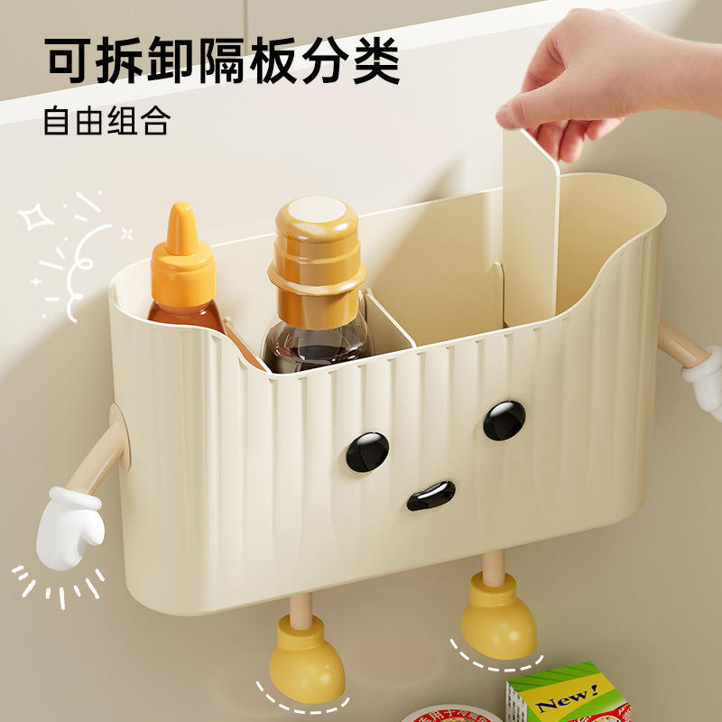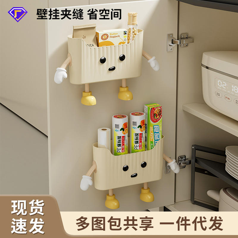Caja de almacenamiento montada en la pared de la cocina, color blanco cremoso con divisiones, organizador para puerta de armario, para película adhesiva y suministros de cocina