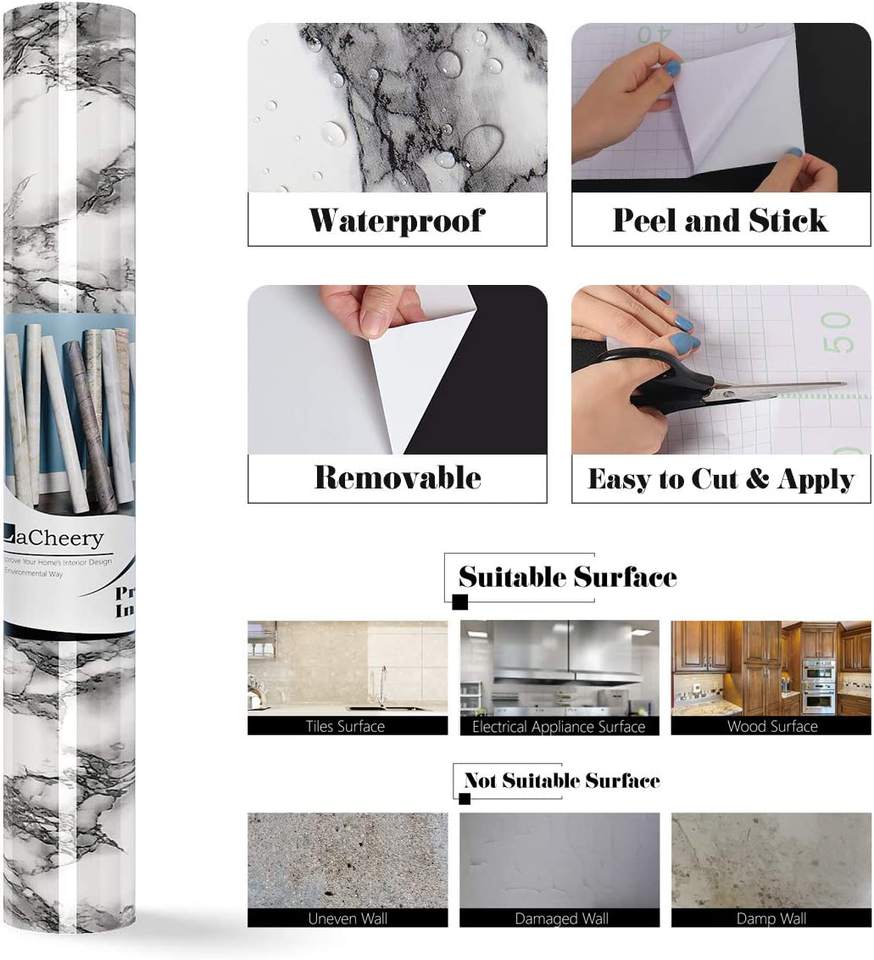 Rollo de papel tapiz de mármol autoadhesivo para cocina, rollo de papel tapiz de tamaño vintage resistente al agua y al aceite