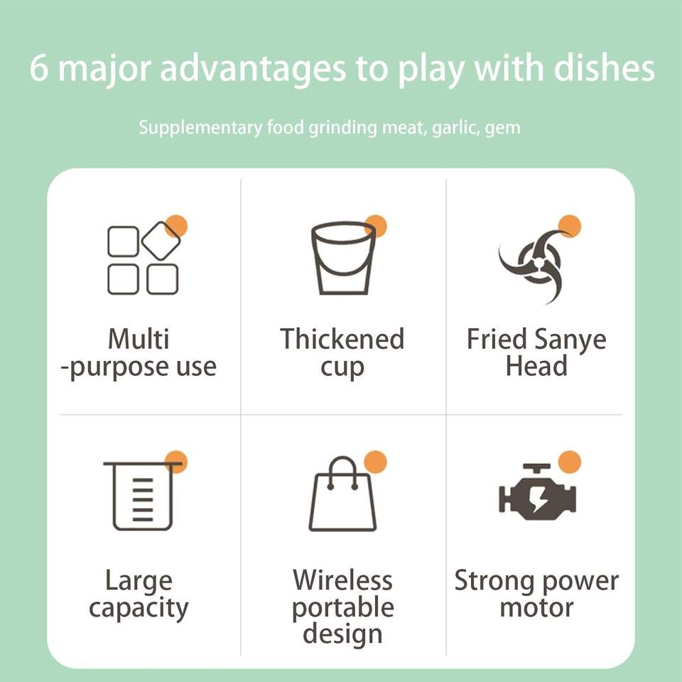 Mini máquina de molinillo de alimentos USB inalámbrica para cocina, batidor de ajo multifuncional, agitador, picador de verduras y prensas
