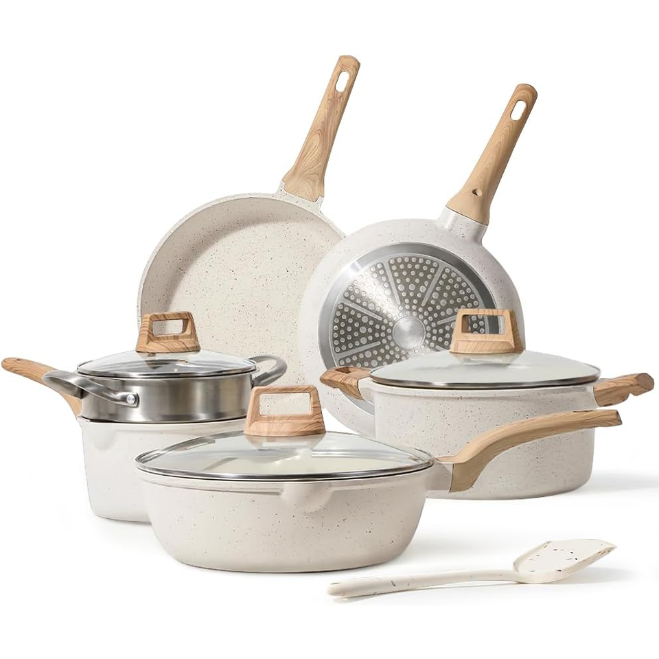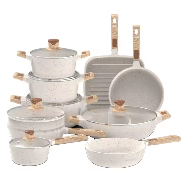 Juego de Ollas y Sartenes de Cocina, Juego de Utensilios de Cocina de Aleación de Aluminio Fundido a Presión con Mango Extraíble, Juego de Ollas de Cocina de Granito