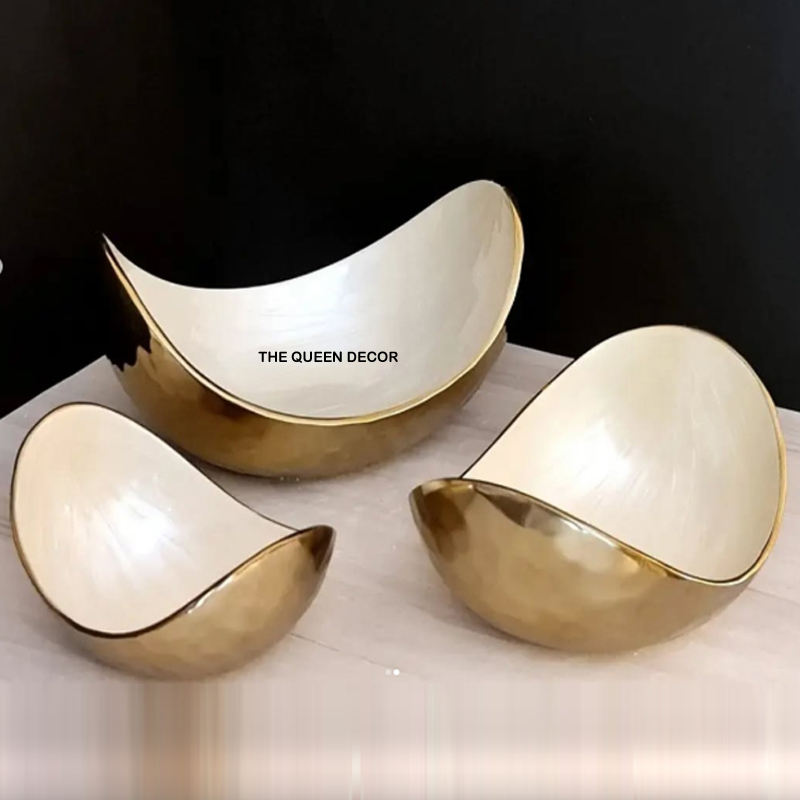 Utensilios de Cocina y Accesorios para Catering, Tazón Decorativo para Ensalada de Frutas, Hecho a Mano en Metal Dorado, Ideal para el Hogar y Restaurantes