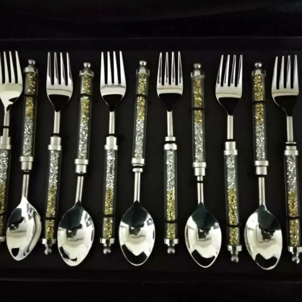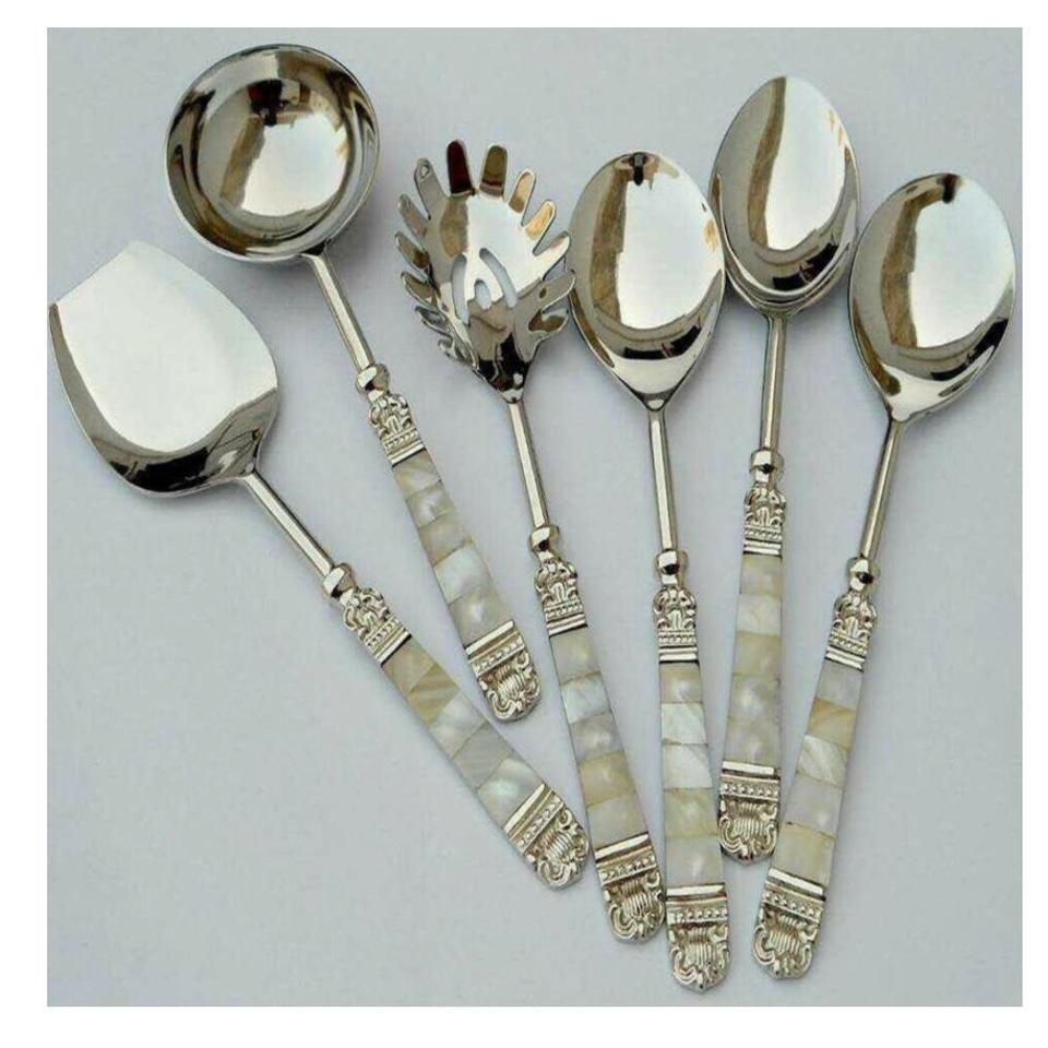Juego de cubiertos de acero inoxidable usado con mango con incrustaciones de hueso, cuchara decorativa, juego de cubiertos metálicos a precio asequible