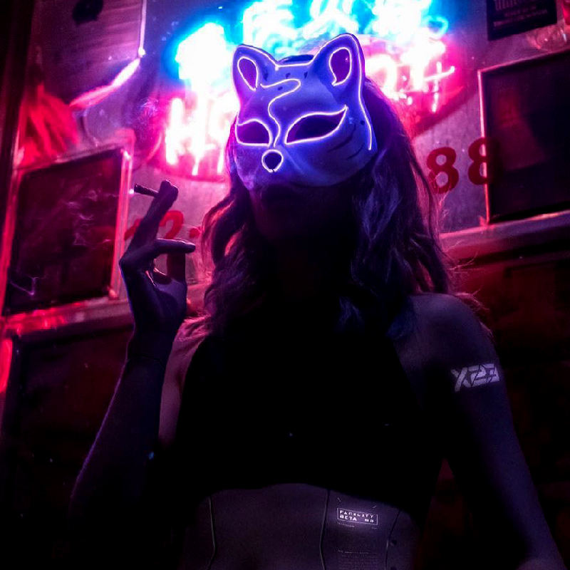 Kitsune Fox LED Máscara iluminada Halloween, EDM, Cosplay, Rave, Fiesta, Película. Disfraz
