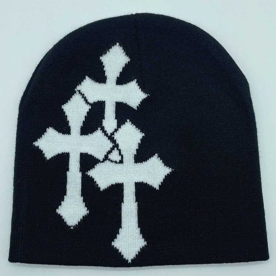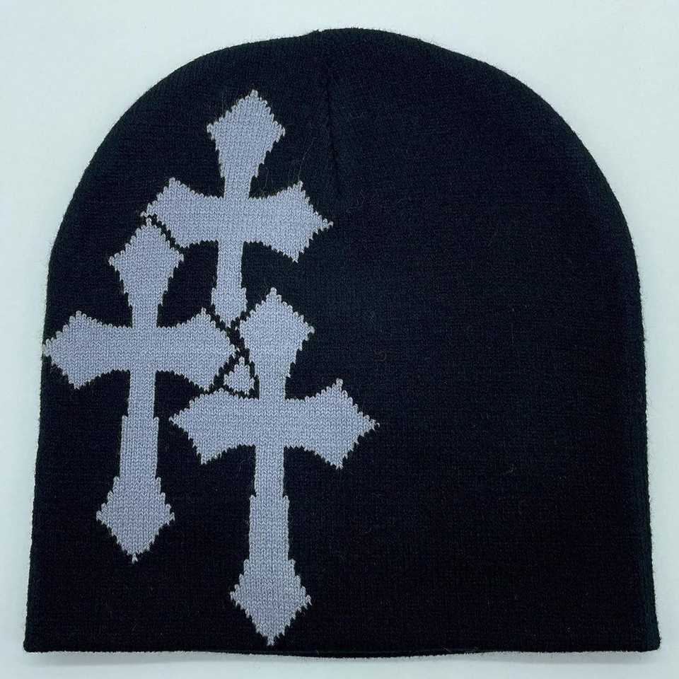 Kivotech Gorros Sombrero Cross Graphics Hombres Mujeres Jacquard Sombrero Punk Color sólido Sombrero Deportes al aire libre Tendencia Beanie Stretch cap