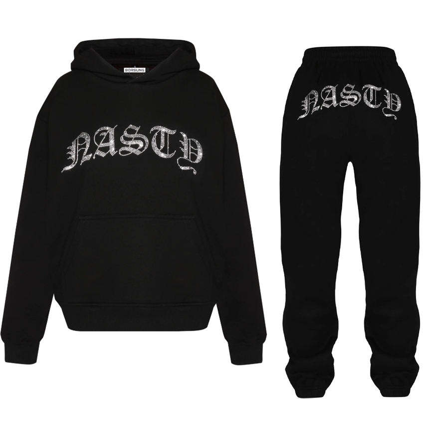 Kivotech Chándales de Alta Calidad con Diamantes de Imitación, Ropa Deportiva Negra, Chándales de Dama de Estilo Desgastado, Novedad