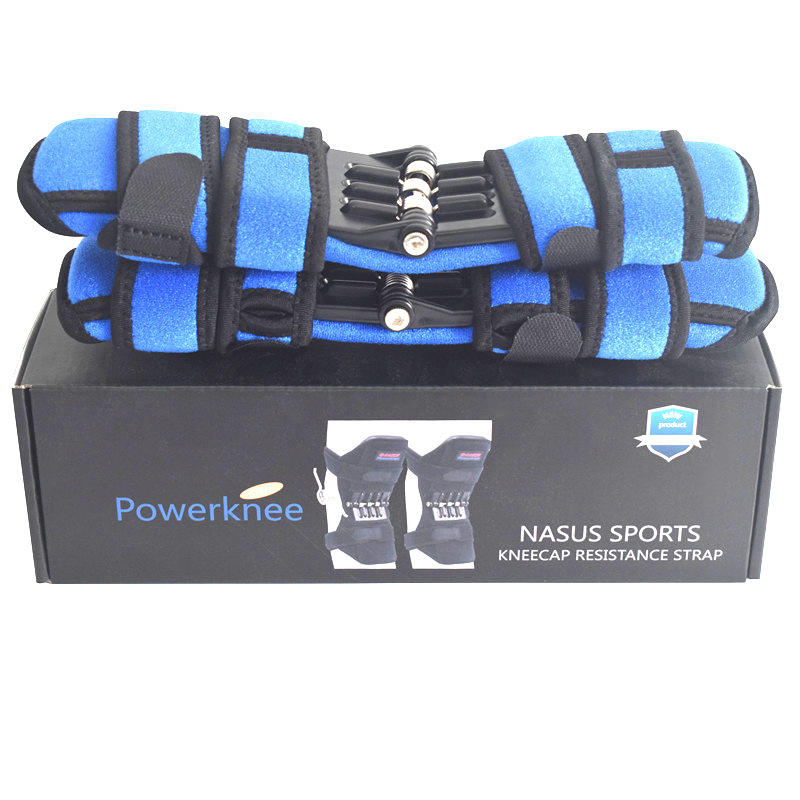 Rodillera de Soporte Rotuliano Azul Ajustable para Montañismo, Correr, Senderismo y Protección Articular