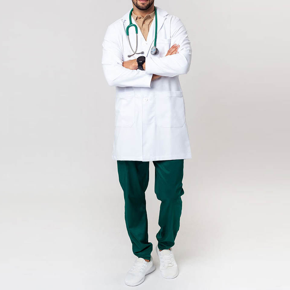 Técnicos hasta la rodilla Bata de laboratorio Médicos y científicos de longitud completa Bata desechable para seguridad de laboratorio