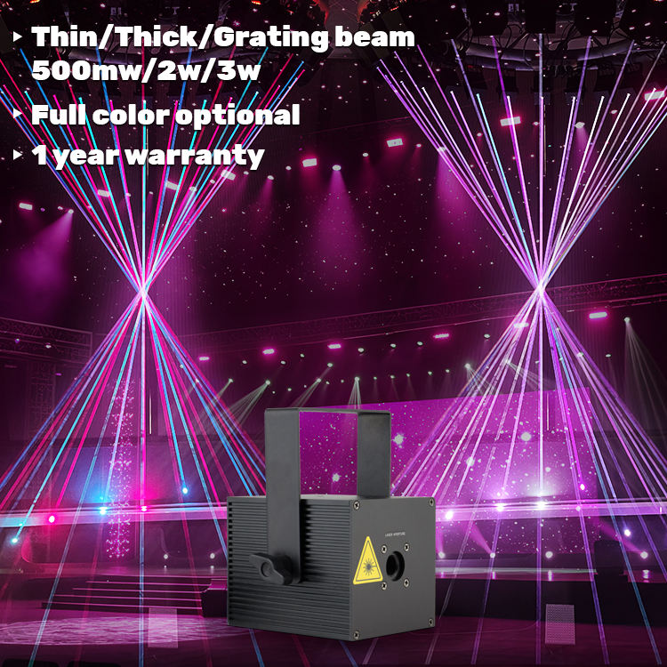 Potencia del láser:2W RGB: (R: 500mW 638nm G: 500mW 520nm B: 1W 450nm)