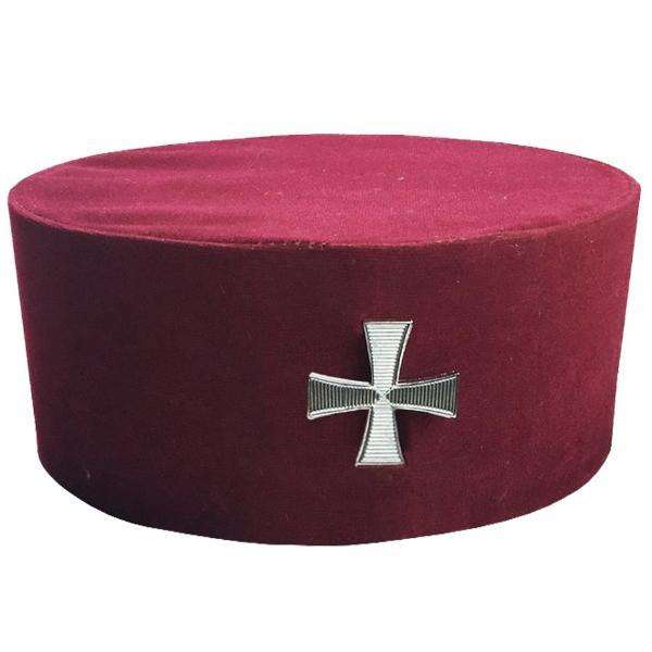 Caballeros Templarios Regulación inglesa Gorro de corona Terciopelo granate con Cruz Gorras templarias de caballero personalizadas