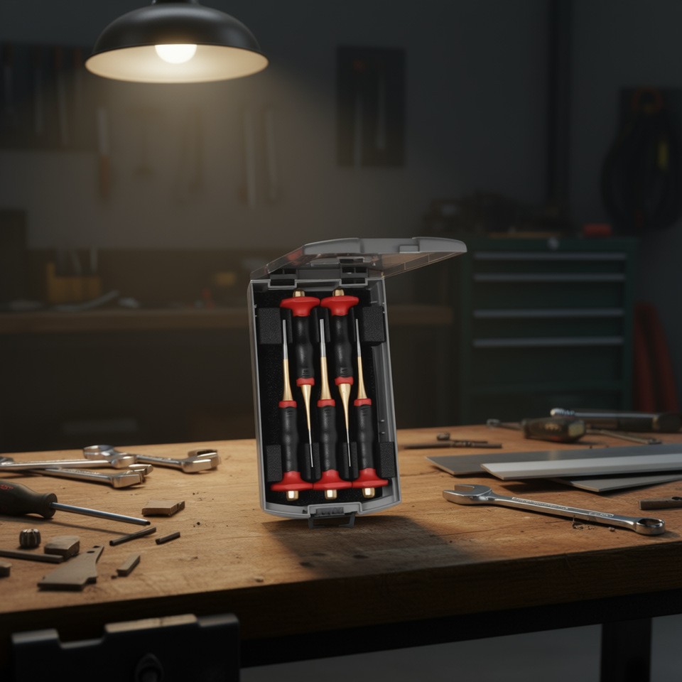 Juego de Punzones Paralelos Knipex de 5 Piezas con Protección para las Manos, Caja de Plástico, Cinceles y Punzones