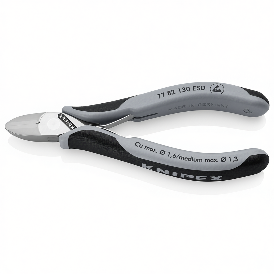 Cortadores laterales electrónicos Knipex ESD 77 82 130 con bisagra de paso, fabricados en Alemania