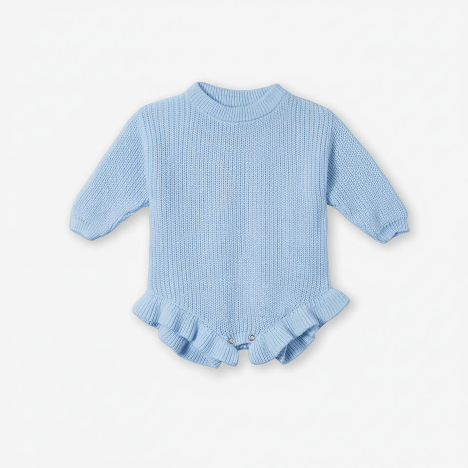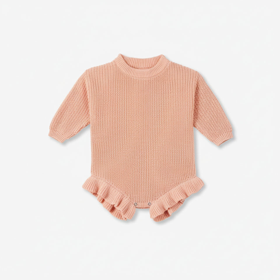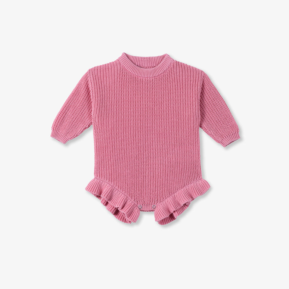 Mono de bebé de punto 100% algodón para niñas, con volantes, color liso, invierno, ODM y OEM, ropa de punto infantil de Vietnam