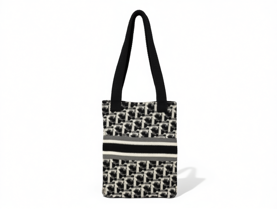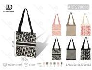 Bolso de hombro tejido con patrón de letras, dos asas, cierre abierto, uso diario, para todas las estaciones