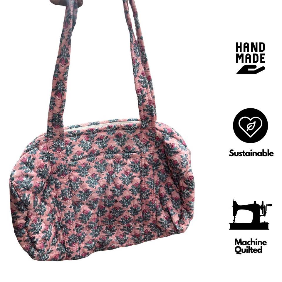 Bolso de lona pequeño KnnottedEarth con estampado a mano, acolchado de algodón, estilo bohemio, para viaje de fin de semana, con cierre de cremallera, hecho a mano, étnico, para pasar la noche