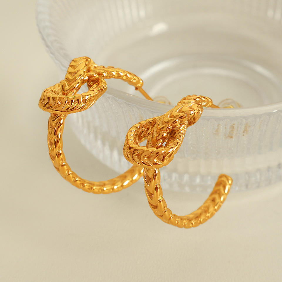 Pendientes de Nudo en Color Dorado, Acero de Titanio, Diseño Geométrico, Pendientes Colgantes de Moda