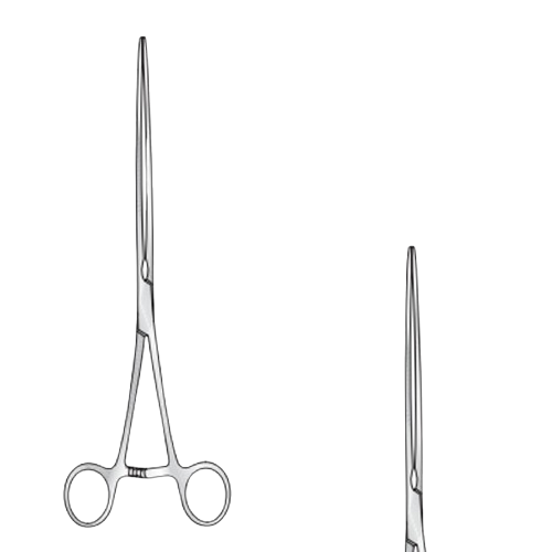 Pinzas Intestinales Kocher de Acero Inoxidable, Manuales, con Resorte Ligero, Hojas con Dentado Longitudinal, Rectas, 120 mm, 250 mm de Largo, Uso General