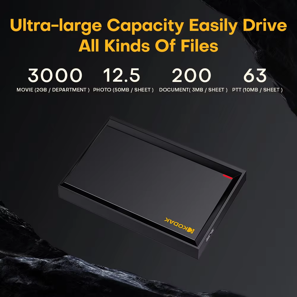Disco Duro Portátil Kodak de 2.5 Pulgadas, USB 3.0, 5 Gbps, 500 GB/1 TB, Disco Duro Externo HDD para PS4, Computadora de Escritorio, Expansión de Capacidad
