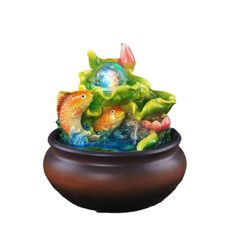 Fuente de agua decorativa de resina con peces koi para interiores, regalo para decoración del hogar u oficina.