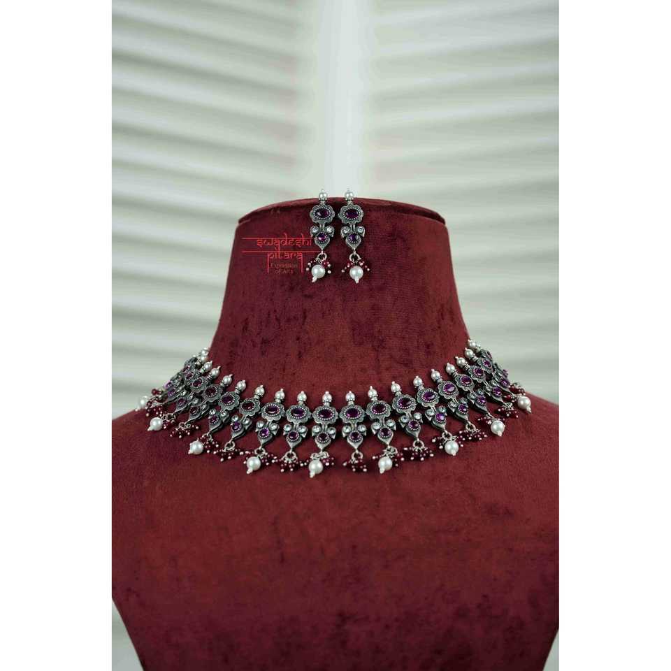 Conjunto de collar de plata Kolhapuri con rubí y piedra Kota para bodas