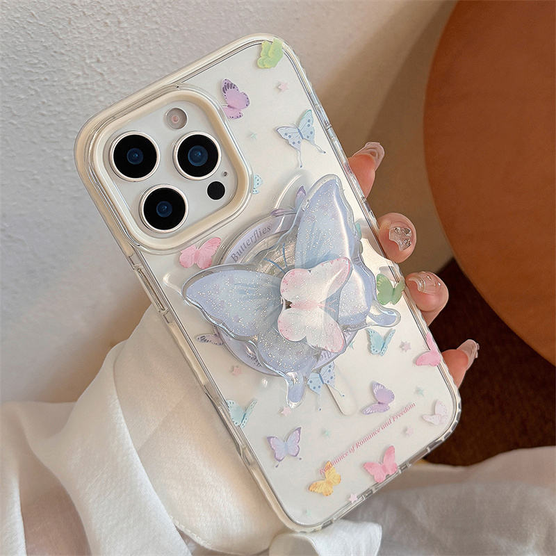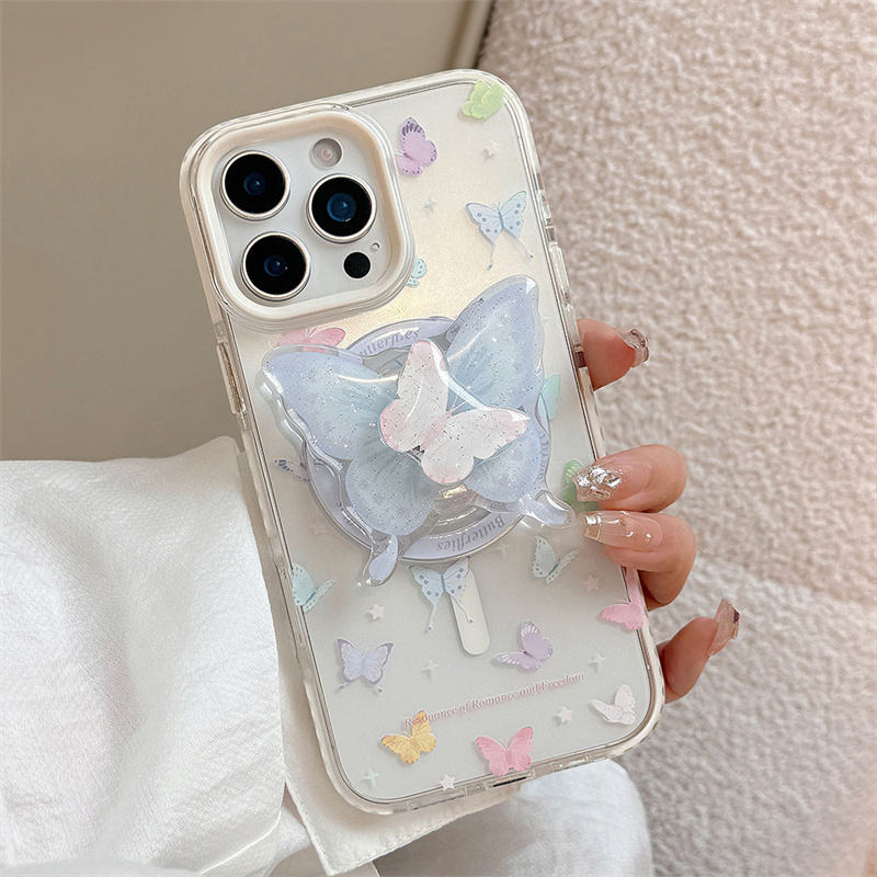 Funda de teléfono magnética con rotación de mariposa bonita coreana para IPhone 16 15 14 Pro Max 13 funda con soporte Tok