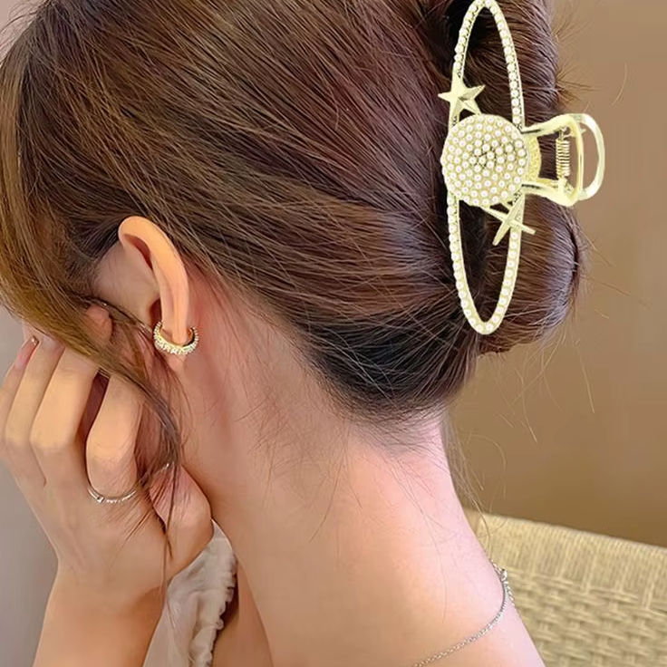 Pinzas de Pelo Decorativas de Moda Coreana para Niñas, Diseño Art Deco de Resina, Forma Redonda, Juego de Pinzas de Pelo Grandes Doradas