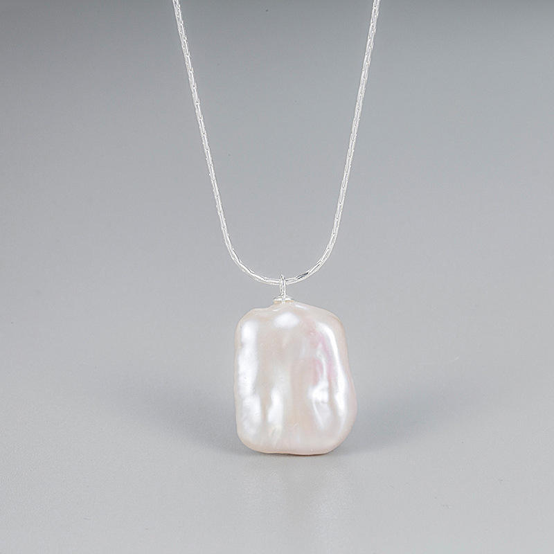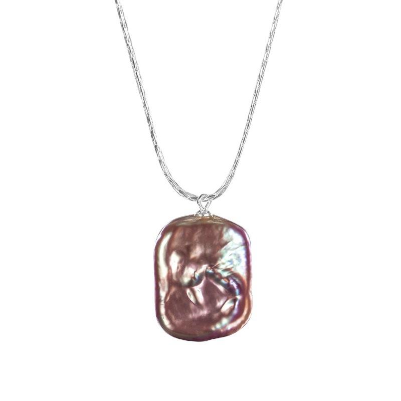 Collar de Perlas de Agua Dulce de Inspiración Coreana para Mujer, Diseño de Nicho, Colgante Cuadrado de Forma Barroca, Cadena para Clavícula