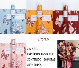 Papel coreano con diseño de flores y mariposas, 57x57 cm, para envolver regalos, manualidades, 20 piezas