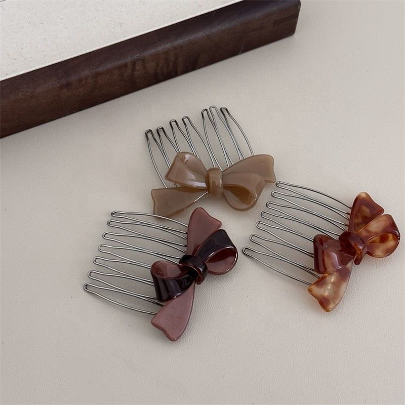 Accesorios para el Cabello de Estilo Coreano, Acetato, Diseño Geométrico Clásico, Color Chocolate con Leche, Pasadores Laterales para el Cabello