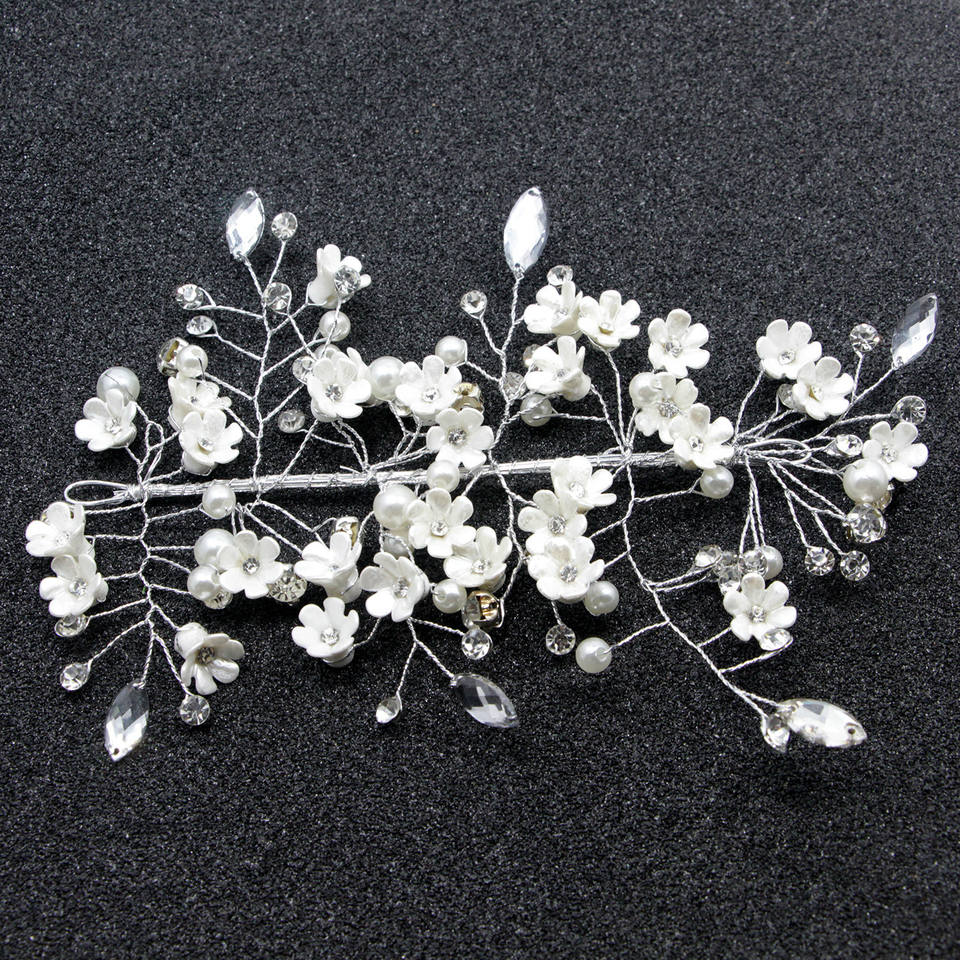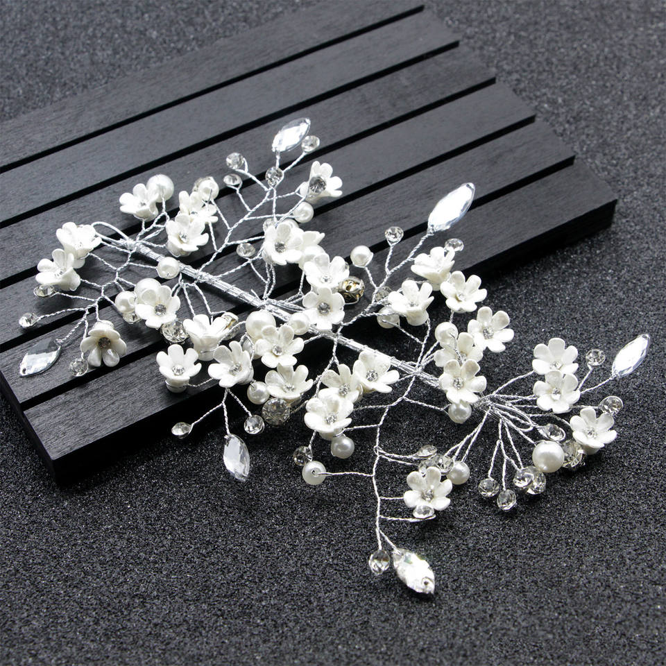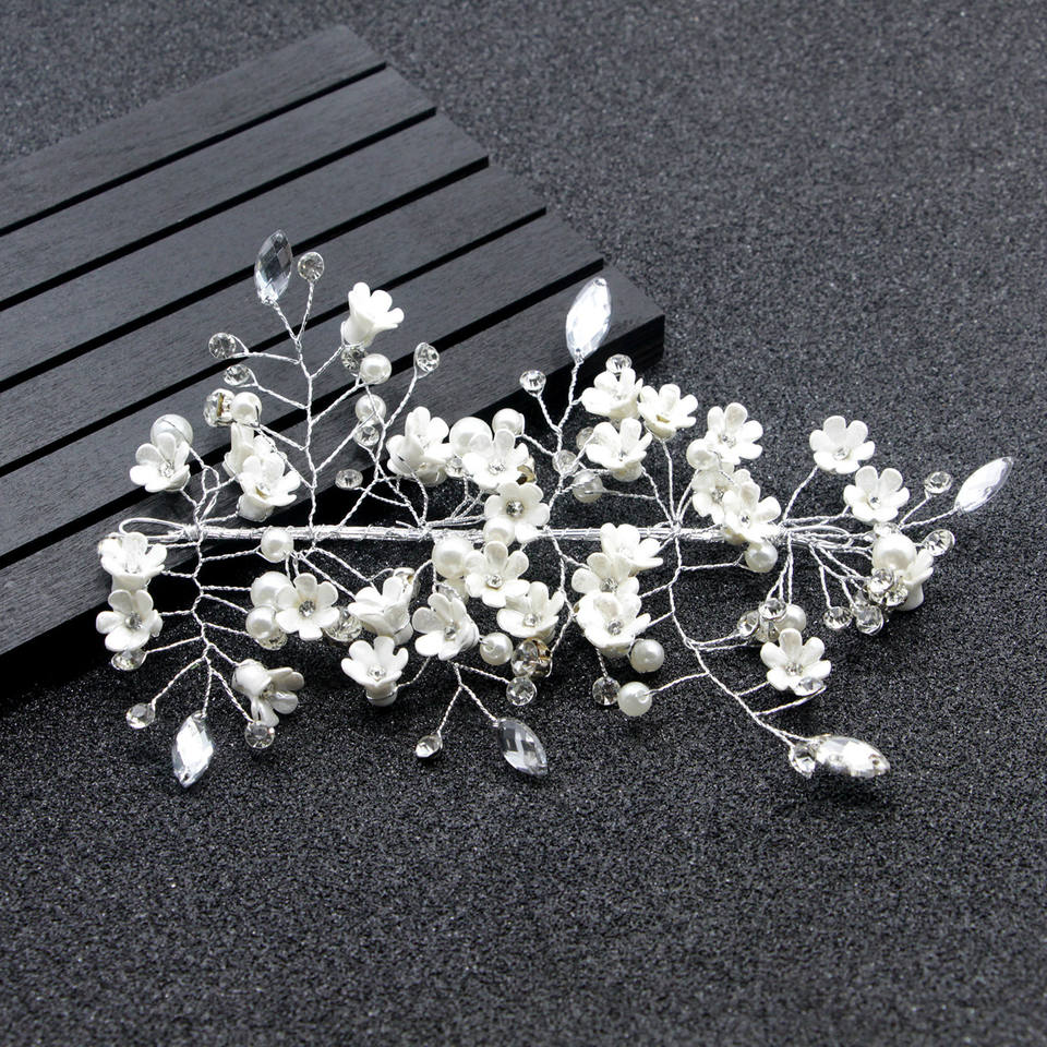Accesorios de Maquillaje de Novia Estilo Coreano, Diadema Hecha a Mano con Flores Blancas y Pedrería, Tocado en Existencia