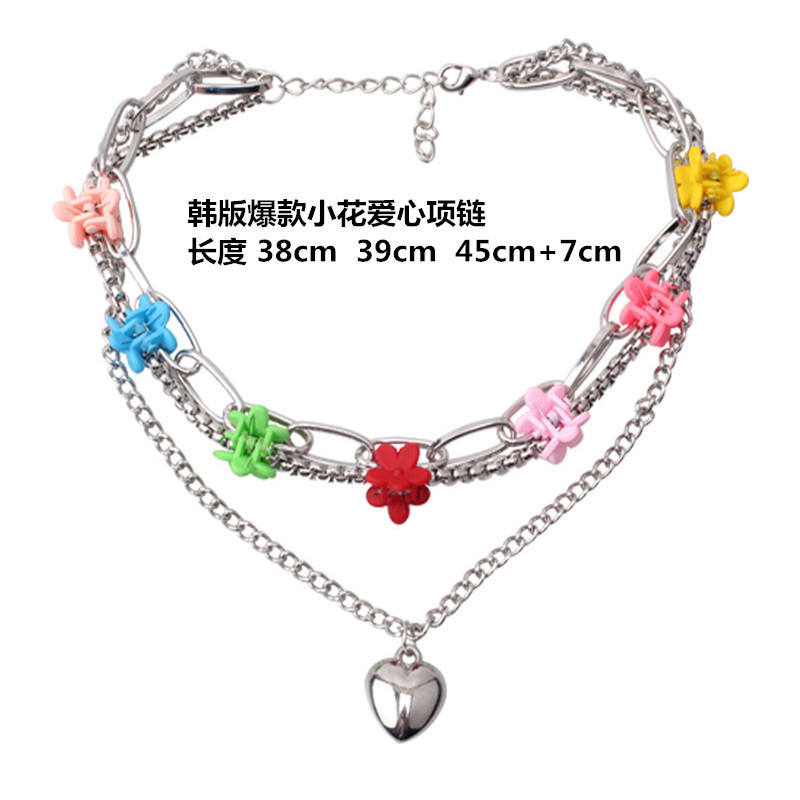 Collar de cadena de flores de varias capas de estilo coreano con colgante de corazón para mujer, joyería de aleación de zinc para uso diario