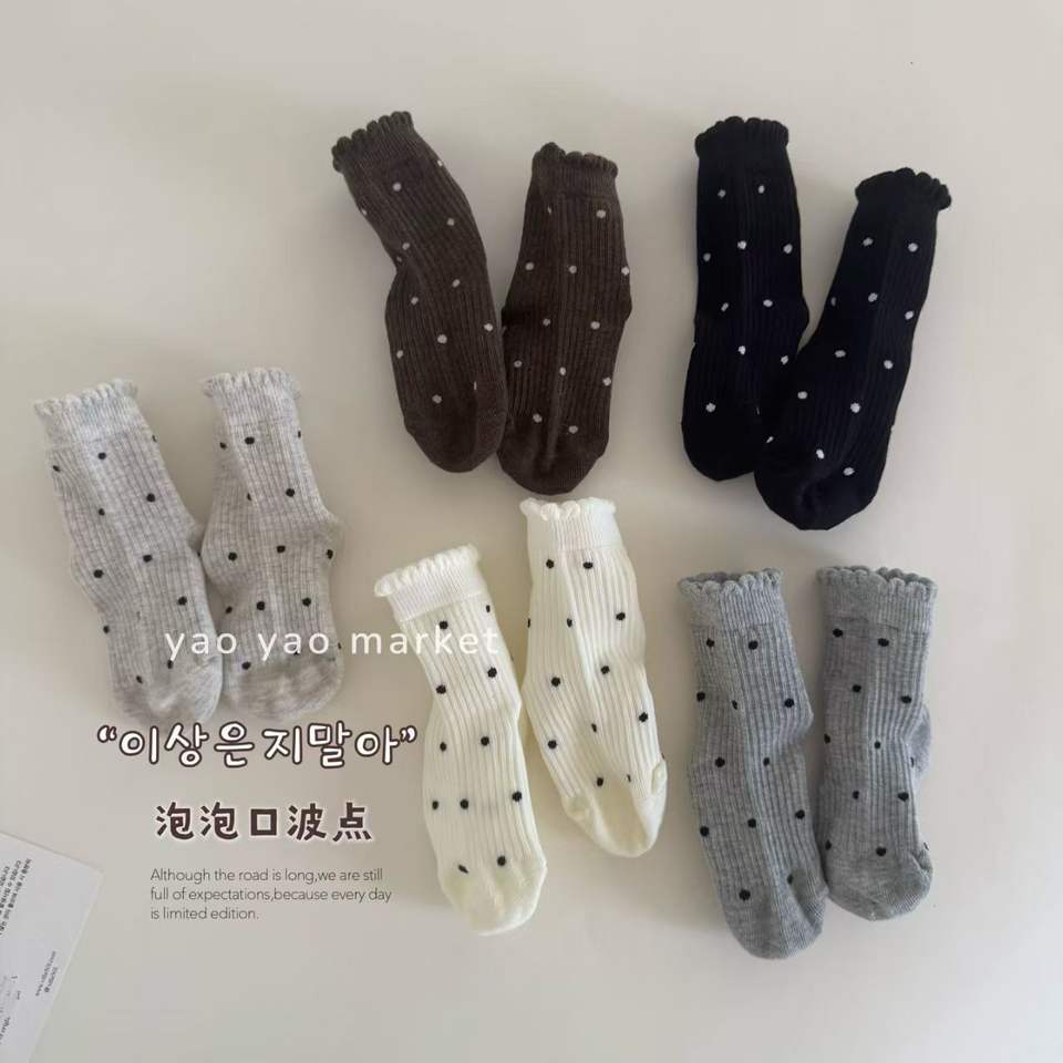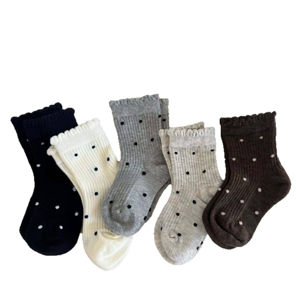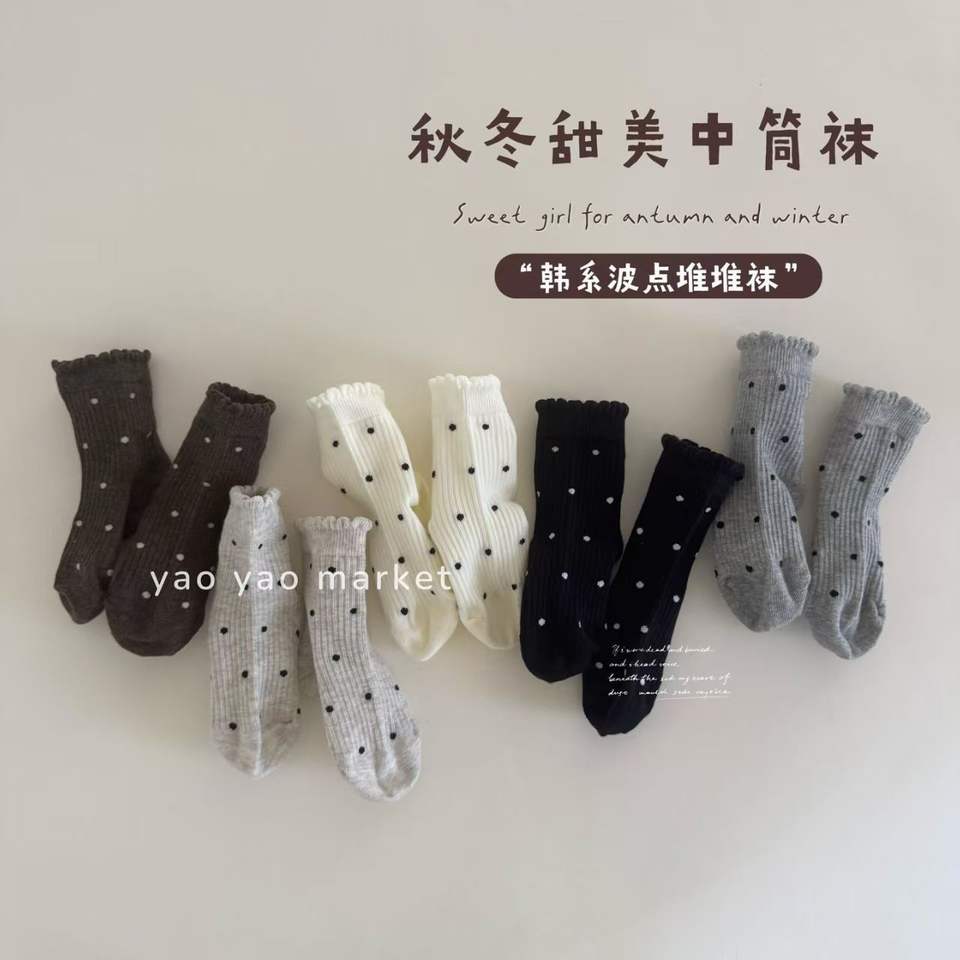 Korean Style Polka Dot Stack Socks Women Medium Thickness Breathable Mid Calf Socks With Lace Trim For Autumn Winter
