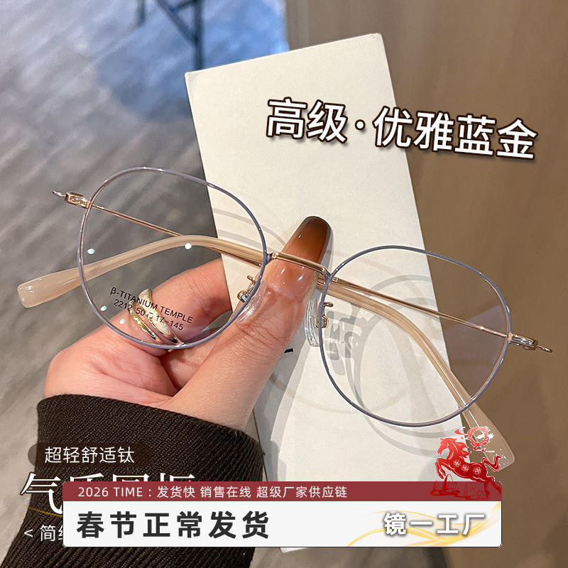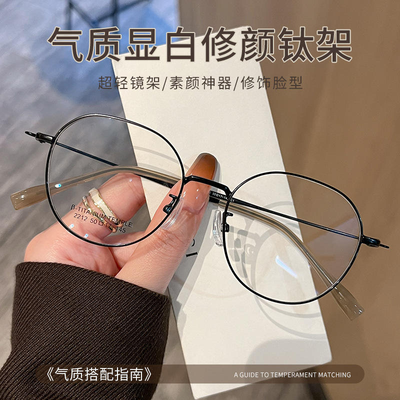 Gafas con montura redonda de estilo coreano para mujer, montura pequeña de titanio puro para miopía, montura Danyang 2212, tamaño mediano