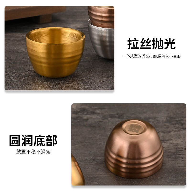Juego de Vasos Miniatura de Acero Inoxidable Estilo Coreano, Rayados, 304, Dorados y Plateados, para Té, Vino, Soju y Otras Bebidas, Aptos para Lavavajillas