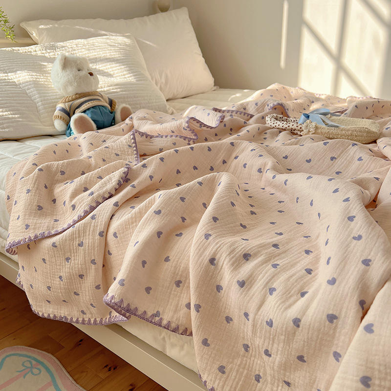 Manta con estampado de lazo de 4 capas súper suave coreana, gasa de algodón, mantas ecológicas para bebés para recién nacidos, suave